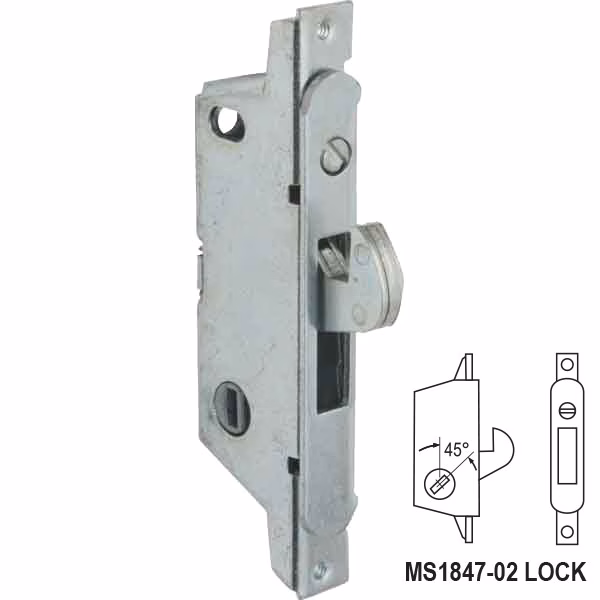 The Adams Rite MS1847 02 630 A compact lock designed to fit within very narrow sliding door stiles without compromising the high degree of security these doors need. The sturdy stainless steel bolt has two important features not usually found in sliding door hardware. First, it is adjustable: a full 3/16″ lengthening or shortening of bolt projection is possible by turning an exposed screw in the face of the lock. This can compensate for considerable misalignment between door and jamb. Second, the MS1847 bolt is self-protecting: if the door is closed with the bolt in the locked position, the bolt will retract immediately on contact with the jamb, thus preventing damage or accidental lock-out.